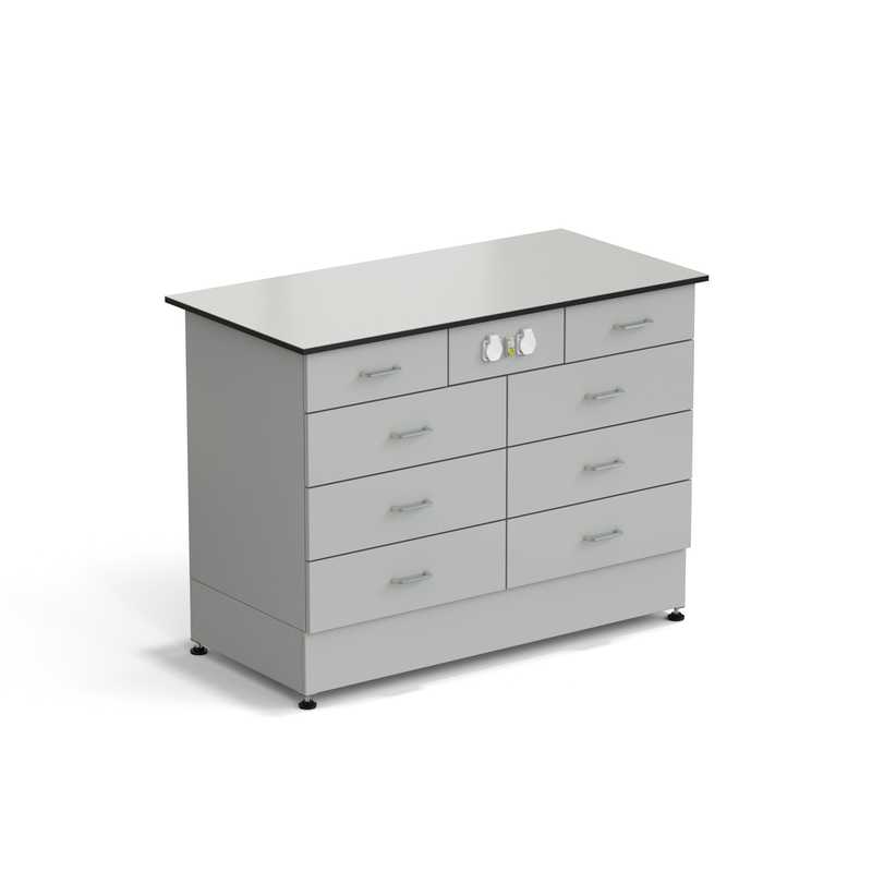 77.0139.10.08-01 Стол-тумба ЭКРОС 1200х600х900 мм 2 ящика + 3 ящика + 3 ящика с электрикой, раб. поверхность - LABGRADE