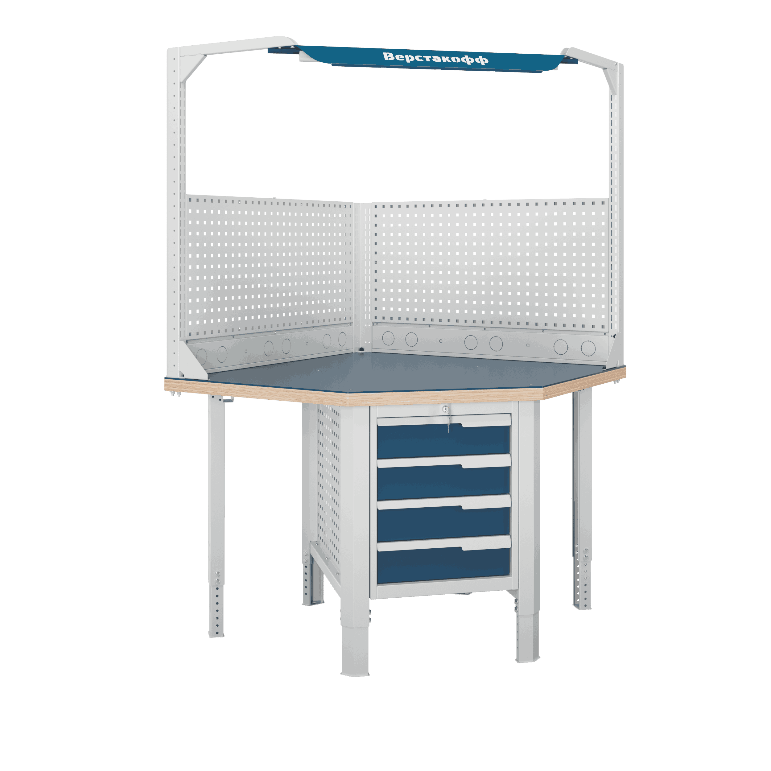 Блок стыковки углового верстака серии Constructor U5 разработан для обеспечения максимальной гибкости и надежности, учитывая конструктивные характеристики рабочего помещения. <br />