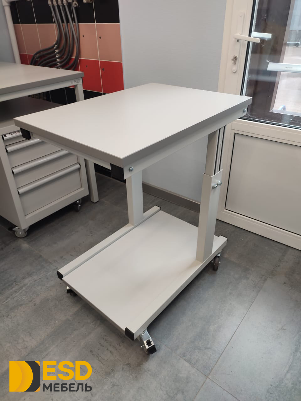 Подкатной стол ПСП изготавливается в общепромышленном и антистатическом ESD исполнении.