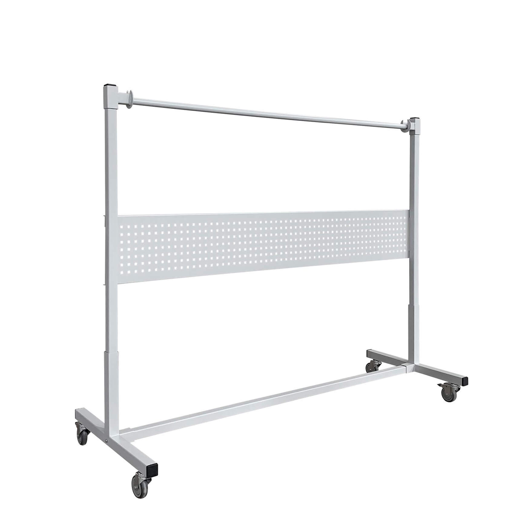 Каркас стойки для лотков выполнен из П-образного профиля, покрытого износостойкой порошковой краской светло-серого цвета RAL7035. Высота планок регулируется. Распределенная нагрузка на стойку — до 120 кг. Стойка оснащена четырьмя колесными опорами, две из которых с механизмом фиксации.